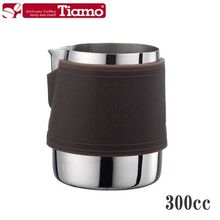 清仓Tiamo不锈钢拉花杯/无把手拉花缸奶泡杯 咖啡色硅胶杯套300cc