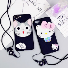 iphone7plus手机壳挂绳苹果6plus手机壳化妆镜子硅胶卡通6S软潮女