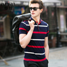 尊舰2017男装夏季中年短袖T恤男商务休闲条纹POLO衫薄体恤衫衣服