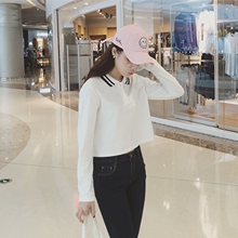 韩版春秋季长袖t恤女学生学院风宽松韩国显瘦短款原宿polo衫上衣