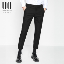 UO男装春夏新款男士九分西裤韩版黑色修身休闲裤青年上班9分裤 潮