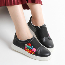 35到40码n22017春季新款黑色羊皮绣花深口乐福鞋大码女单鞋女鞋