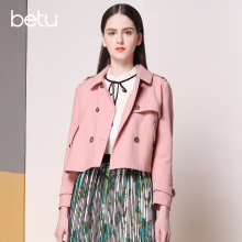 Betu/百图修身折褶长袖短款风衣外套女上衣2016春新款1602T26