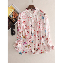 真丝蝴蝶印花衬衫 真丝衬衫女长袖 欧洲站新款翻领桑蚕丝衬衣女