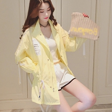 夏天新款字母贴布糖果色收腰外套女中长款长袖防晒衣宽松薄风衣潮