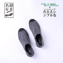 磨砂真皮套筒短靴增高显瘦春季高帮休闲鞋男士一脚蹬厚底板鞋潮男