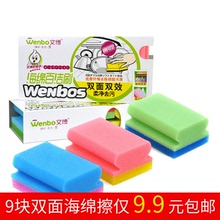 9块装 文博海绵擦 彩色双面双效海绵百洁刷 百洁布除污渍洗碗擦