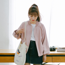 晨雾海棠/自制 立领休闲复古棒球服女 百搭长袖飞行员夹克外套 春