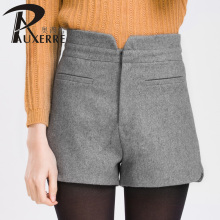 奥西蕾2016秋新品毛呢短裤女高腰阔腿短裤冬修身显瘦靴裤加厚