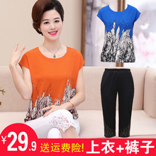 天天特价 中老年女装套装妈妈装上衣+裤子中年人T恤夏装两件套装