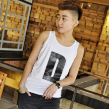 T时代 2017春夏新款 日韩潮男宽松无袖t恤 字母印花纯棉打底束胸