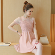 2016夏季新款女装韩版修身显瘦气质淑女短袖中长款网纱蕾丝连衣裙