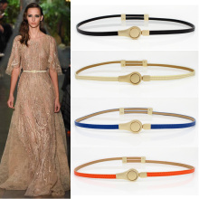 金属时尚简约百搭真皮细腰带女装饰皮带连衣裙子毛衣配饰黑金白色