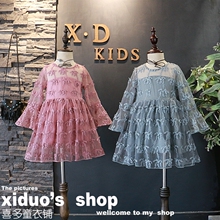 喜多家韩国单童装2017春装女童立体刺绣蕾丝喇叭袖公主连衣裙7