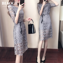 裙子2017女夏季新款女装气质修身显瘦时尚潮镂空中长款蕾丝连衣裙