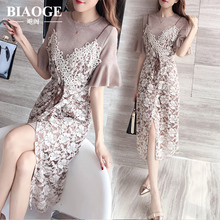 蕾丝连衣裙女夏季2017新款韩版显瘦气质中长款时尚小清新a字裙子