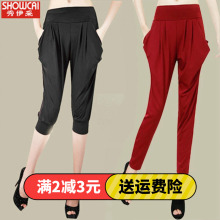 七分裤女夏休闲裤九分雪纺哈伦裤女裤子薄款马裤大码中裤宽松短裤