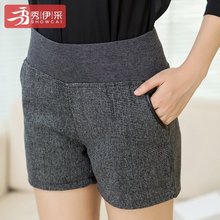 2017新款毛呢子短裤女春秋季春天大码显瘦高腰松紧腰韩版靴裤热裤