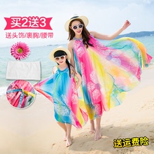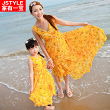 亲子装夏装海边度假母女连衣裙雪纺大码半身裙旅游度假沙滩裙子
