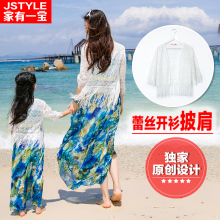 2017亲子装母女薄款蕾丝披肩百搭小外套女夏季短款开衫镂空防晒衫