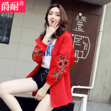 防晒衣女中长款2017夏季新款女装韩版时尚百搭bf休闲刺绣薄外套潮