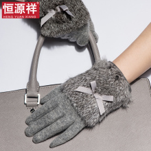 恒源祥韩版秋冬季保暖触摸屏羊毛手套可爱兔毛女骑车手套女士手套