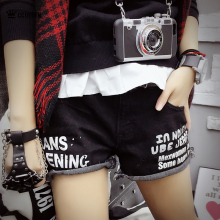 Ccqueen春装2017新款街头混搭休闲做旧立体裁边字母工装短裤热裤