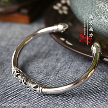 静守泰国老银匠手工南方南方纯银饰品复古风民族女款镂空开口手镯