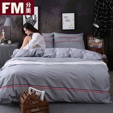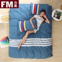 简约纯色运动风条纹床上用品四件套1.5m被套床单1.8床笠