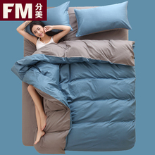 分美简约全棉四件套纯色纯棉被套1.5米/1.8m床单2.0m双人床上用品