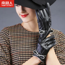 南极人皮手套女冬加厚保暖优雅时尚蝴蝶结头层羊皮 女士开车手套