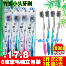 清亮 竹炭细丝软毛成人小头牙刷情侣牙刷家庭用8支独立装包邮