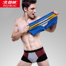 北极绒男士内裤竹纤维平角裤撞色透气裤头U凸性感无痕中腰四角裤