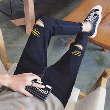 2017夏装薄款九分裤男士牛仔裤潮流破洞小脚裤男韩版男装9分裤子