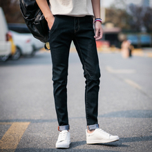 春季九分牛仔裤男韩版弹力修身小脚裤男士黑色港风青少年男生裤子