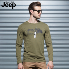吉普 战车春季新款T恤男圆领长袖青年纯棉休闲男士打底衫宽松大码