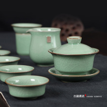 正品龙泉青瓷盖碗套 茶碗茶杯茶海 陶瓷盖碗功夫茶具套装整套家用