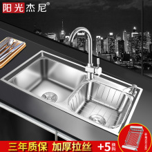 阳光杰尼 厨房304不锈钢水槽双槽套餐 洗菜盆双盆 加厚拉丝水盆
