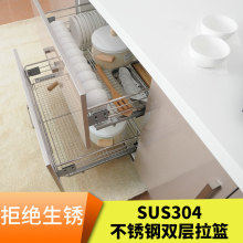 阳光杰尼厨房橱柜拉篮 双层抽屉式碗碟架碗篮 拉篮厨柜不锈钢拉篮