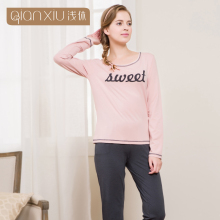 浅休家居服套装春秋季新款纯色纯棉长袖两件套宽松保暖女士睡衣