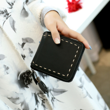 时尚2017春季新款简约方形女士钱包短款拉链小钱夹流苏迷你零钱包