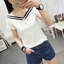 2017夏季新款短袖t恤女甜美学院风简约印花上衣学生修身显瘦百搭