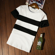 男士短袖T恤夏季白色纯棉圆领修身韩版 条纹薄款衣服学生个性潮流