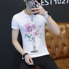 夏装短袖T恤男 青年韩版潮流圆领纯棉半截袖个性印花修身夏天上衣