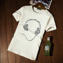 韩版夏季男士T恤衫卡通简约印花纯棉青春学生短袖T恤装潮圆领衣服