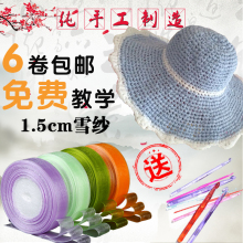 5送1 夏季钩帽子的线毛线缎丝带布条线绳手工编织带diy帽材料包女