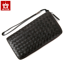 麦哲 牛皮韩版编织钱包 情侣款手拿包 真皮男女长款皮夹手包潮包
