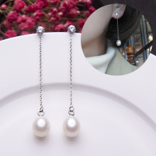玺爱珠宝 S925银天淡水珍珠长款耳线耳环女 然钻镶嵌时尚两用耳饰