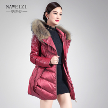 纳维姿2016新品貉子大毛领羽绒服女中长款修身 品牌冬装外套显瘦