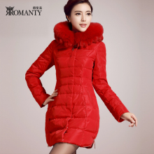 朗曼笛2016新品獭兔大毛领品牌羽绒服女中长款修身 冬装外套连帽